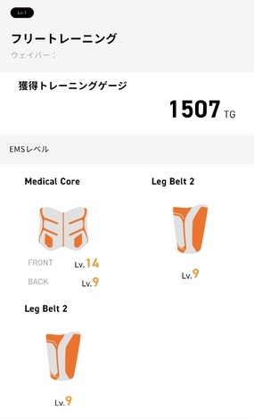 使用レベルはメディカルコアフロント14バック9、レッグベルト2は9です!
