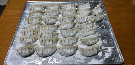 ギョーザのかわと豚ミンチが値引きだったので、家庭菜園のニラを使ってギヨーザを作りました。