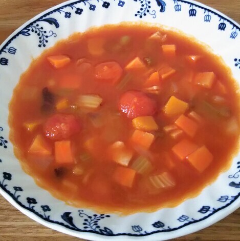 ミネストローネスープには、夏に収穫したミニトマト🍅