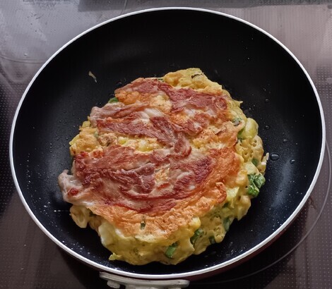 昨日おでんの煮汁を加えて和風出汁のお好み焼きを作りました。