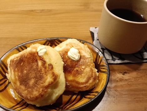 豆腐の消費期限が迫っていたので、ホットケーキの材料にしました(^^)ふわふわ美味しい朝食になって大満足❤️