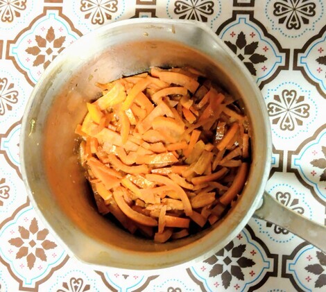 ネーブルオレンジの皮を黒砂糖で煮ました。