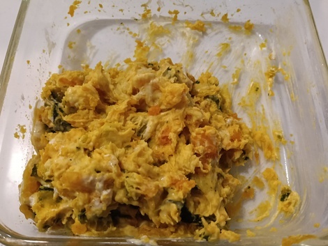 前日のカボチャ煮の残りは、ちょっとアレンジを加えてサラダに変身させました(^^)チーズとマヨネーズで和えて、子どもウケも抜群でした❤️