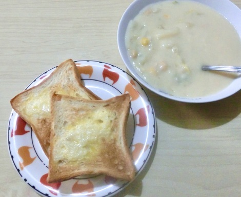 シチューを作って、最後はご飯の残りとチーズを入れてシチューリメイクドリアに。
