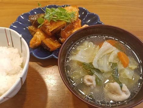 取り除いた鶏皮で、具だくさんのスープを作りました(^^)大満足の一品❤️
