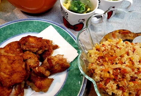から揚げとピラフとスープです🐭🎈