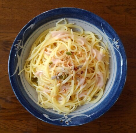 明太子パスタを食べてエネルギーチャージです