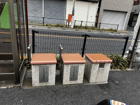 ② 六本木ヒルズのけやき坂で、リボンの形をしたベンチを見つけました!ほっとひと休みができました!