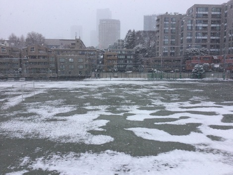 普段は野球やサッカーで賑やかなグラウンドが、今日は静かな雪景色に。