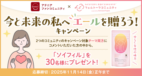 今回のキャンペーンは、いくつになっても「今の自分が一番好き」、そう言える美しさを追求し続ける、アテニアの「アテニア ファンコミュニティ」とコラボします。参加すると、大人女性を応援する素敵なプレゼントが当たるチャンスも!ぜひお気軽にご参加ください。