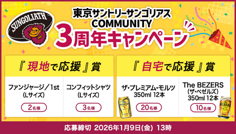「東京サントリーサンゴリアス COMMUNITY」3周年キャンペーン!【イベント】