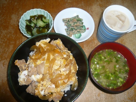 味噌汁に野菜たっつぷり入れる。豚汁、けんちん汁、沢煮椀などで、野菜の小鉢をつける 今日はワカメ胡瓜の酢の物、いんげんの胡麻和えです。