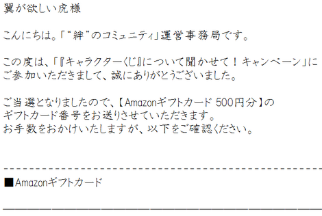 当選の発表は、賞品の発送(電子メールでの送信)をもって代えさせていただきます。