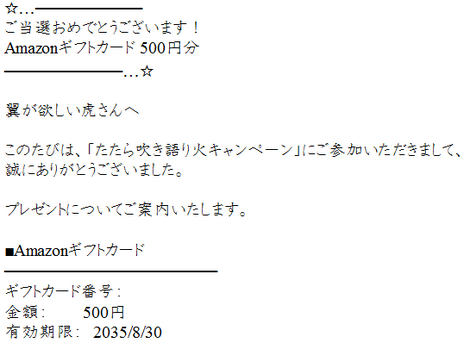 Amazonギフトカード500円分が届きました。ありがとうございます。