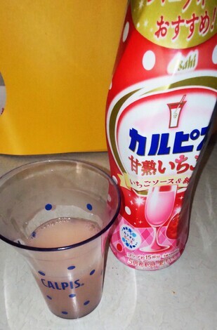 お湯×甘熟いちご(とても甘い)を飲み終わったので、普通の希釈カルピスを買いに行きたいです♪