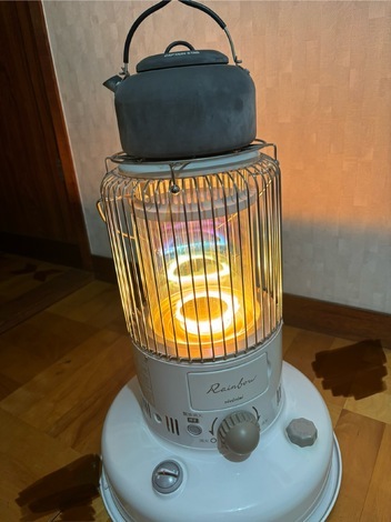 石油ストーブに乗せたやかんの白湯です。