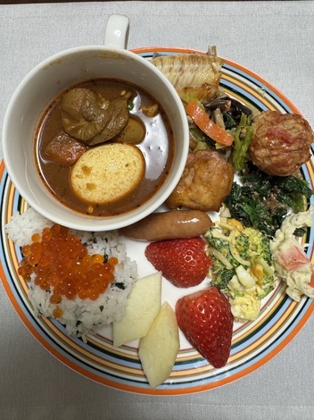 朝からスープカレー、スパイシーで美味しい。
