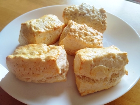 スコーン、コールスローサラダ、バナナヨーグルト、ホットミルク