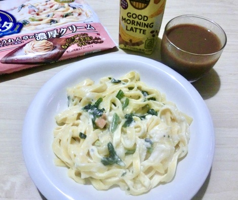 サーモンとほうれん草のクリームスパゲティを食べました。