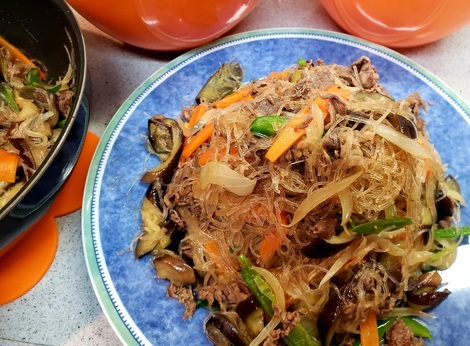 春雨のチャプチェ風(思いっきり思いつき)で作ってみたのですがイイ感じ🎐🐭
