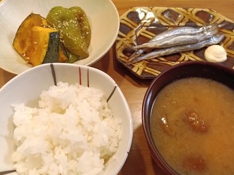 焼きシシャモと野菜の揚げ浸しで夕飯でした(^^)