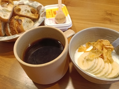 バゲットにコーヒー&ヨーグルトで朝ごはんでした(^^)