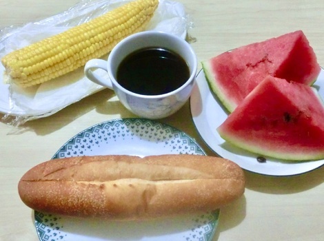 ミルクフランス、トウモロコシ、スイカを食べました。