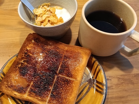 甘いシュガートーストでいつもの朝ごはんでした(^^)