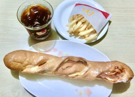 ハムチーズ入りフランスパン、フライドポテトを食べました。