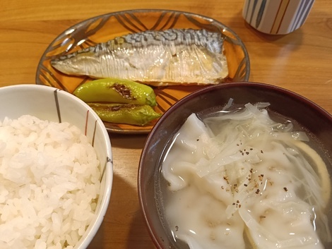 餃子スープに焼き鯖(^^)冷蔵庫にあるもんで夕飯でした♪
