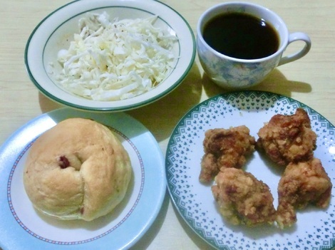 ベーグル、唐揚げ、キャベツを食べました。