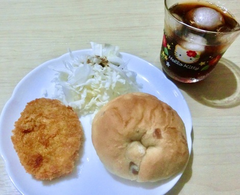 ベーグル、コロッケ、キャベツを食べました。