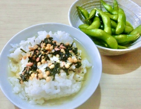 鮭茶漬け、枝豆を食べました。
