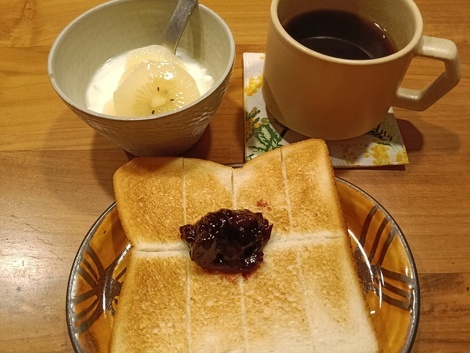 ジャムトーストで、いつもの朝ごはんでした(^^)