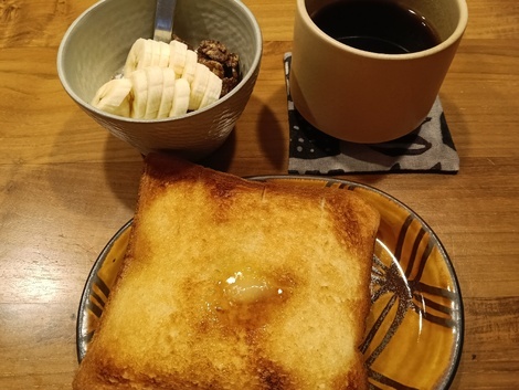 蜂蜜バタートーストで、いつもの朝ごはんでした(^^)
