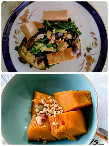 高野豆腐と茄子とニラ炒めを
