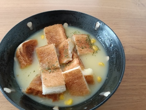 トーストinしたコーンポタージュで、ひとりランチ(^^)