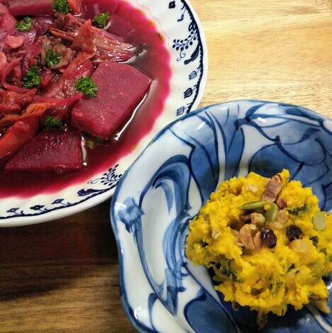 南瓜サラダと、差し入れのボルシチを食べました♪(^^)