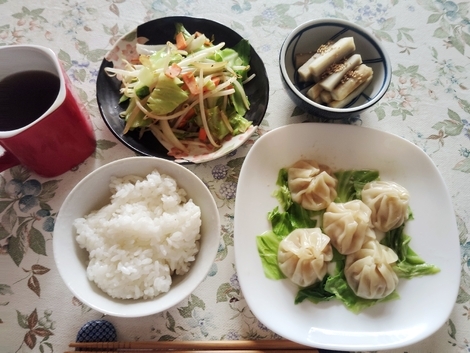 ごはん、小籠包、野菜炒め、酢ごぼう