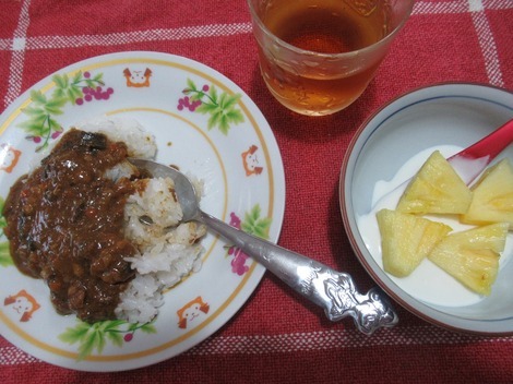 キーマカレー(もう食べちゃってますが笑)、パインヨーグルト