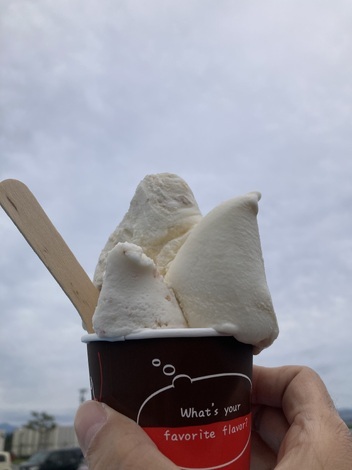 道の駅のJA手作りアイスです。いちじく、ナッツみそ、生醤油の3色カップ。風味が良くて美味でした
