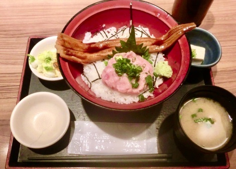 外食で煮穴子・ネギトロ丼定食を食べました。