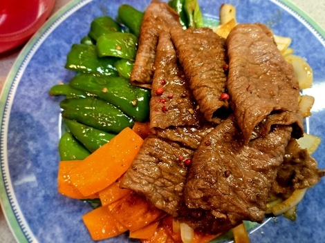 お昼を頼まれたけど時間がなくて、焼き肉炒めです🐭🎈