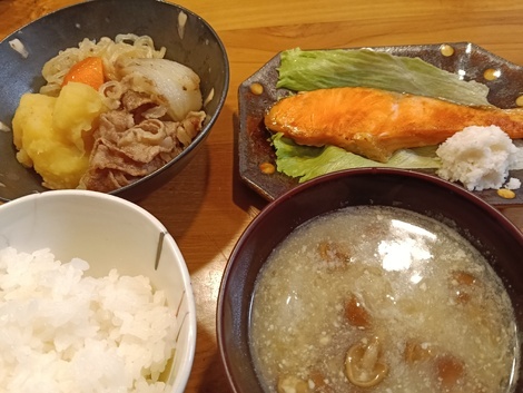 塩鮭に肉じゃが…和食夕飯でした(^^)❤️