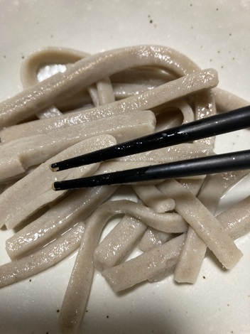 夫が「3時のおやつにどうぞ〜」と蕎麦をうってくれました。私がzoom勉強会に参加している最中に、そば粉を買って来たようです。お昼ご飯は蕎麦屋さんへ行きましたが、、、。打ち粉がなくて小麦粉を打ち粉代わりにしたからか、蕎麦が太くて割り箸のようです。打ちたて茹でたてなので、蕎麦の香りが立って美味しくいただきました。夜ご飯は夫が作る温かいつゆの蕎麦の予感。