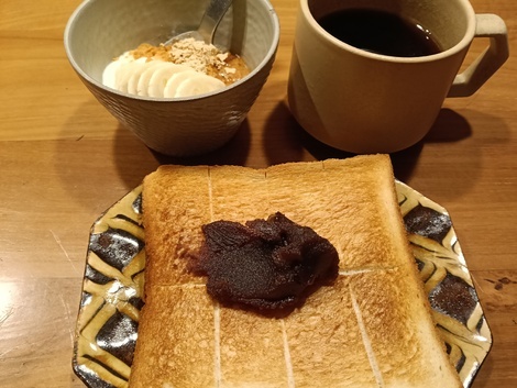 甘い餡トーストで、いつもの朝ごはんでした(^^)
