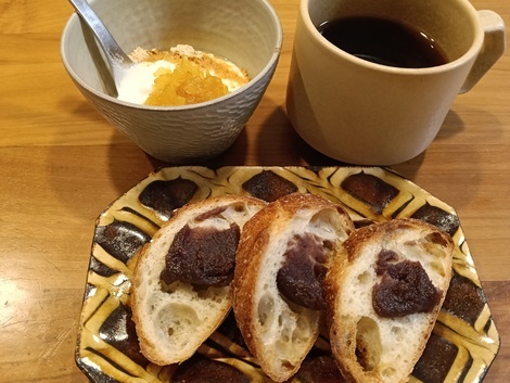 餡のっけたバケットで、朝ごはんでした(^^)❤️