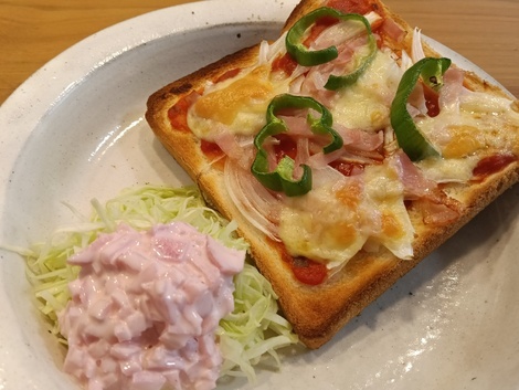 週末ランチ、ピザトーストを子どもたちと作りました(^^)