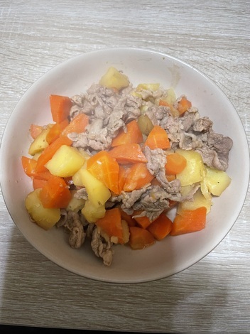 今日は肉じゃがとキャベツとかに棒の胡麻マヨネーズサラダ