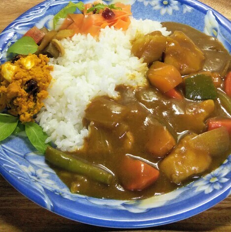 芽が出て来たジャガイモや、使い残しの人参や南瓜を使うためにカレーライスにしました♪